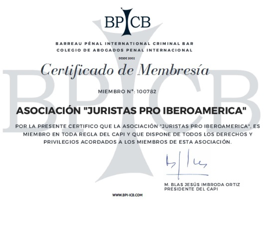Nos complace comunicar que hemos sido admitidos como socios del “Colegio de Abogados Penal Internacional” (CAPI), organismo internacional que reúne Colegios de Abogados Nacionales y regionales y las más importantes Asociaciones de Abogados Internacionales, así como Abogados individuales especialmente comprometidos en la promoción de una justicia penal internacional y la defensa de los derechos de los abogados de manera global.