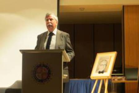 Joan Garcés, Abogado, Académico y Premio Berg de DDHH, fue el encargado de presentar la figura del Jurista Raphaël Lemkin, quien acuñó el término “genocidio” (1944) a partir del sustantivo griego genos ('raza', 'pueblo') y del sufijo latino cide (de cadere, 'matar'); “el crimen sin nombre”, lo había denominado Winston Churchill.