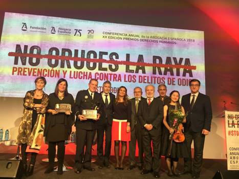 Concluida la Conferencia Anual, se entregaron los Premios Derechos Humanos 2018, que también estaban dedicados de forma extraordinaria a la lucha y prevención contra los delitos de odio, en un acto presentado por Sara Giménez, Abogada, Gitana y Representante de España ante el Comité Europeo contra el Racismo y la intolerancia del Consejo de Europa.
