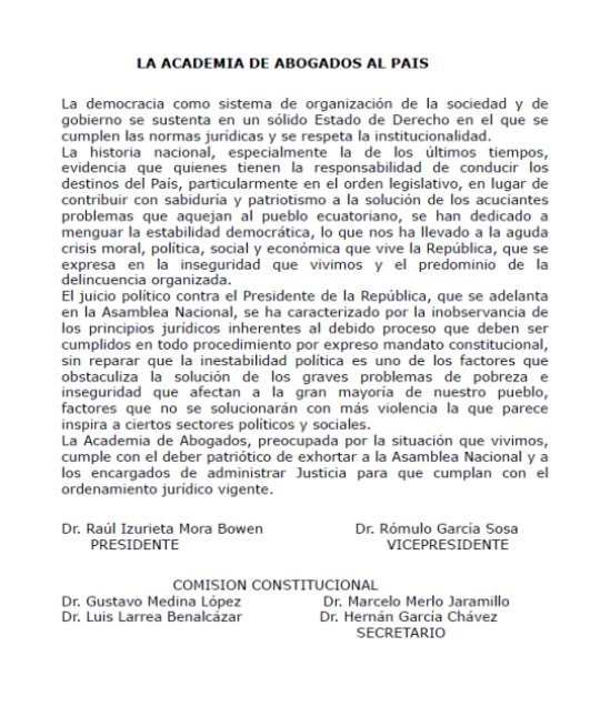 COMUNICADO DE LA ACADEMIA DE ABOGADOS DE QUITO.