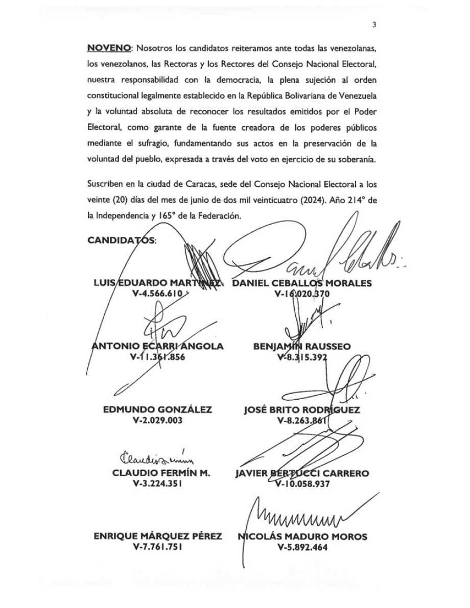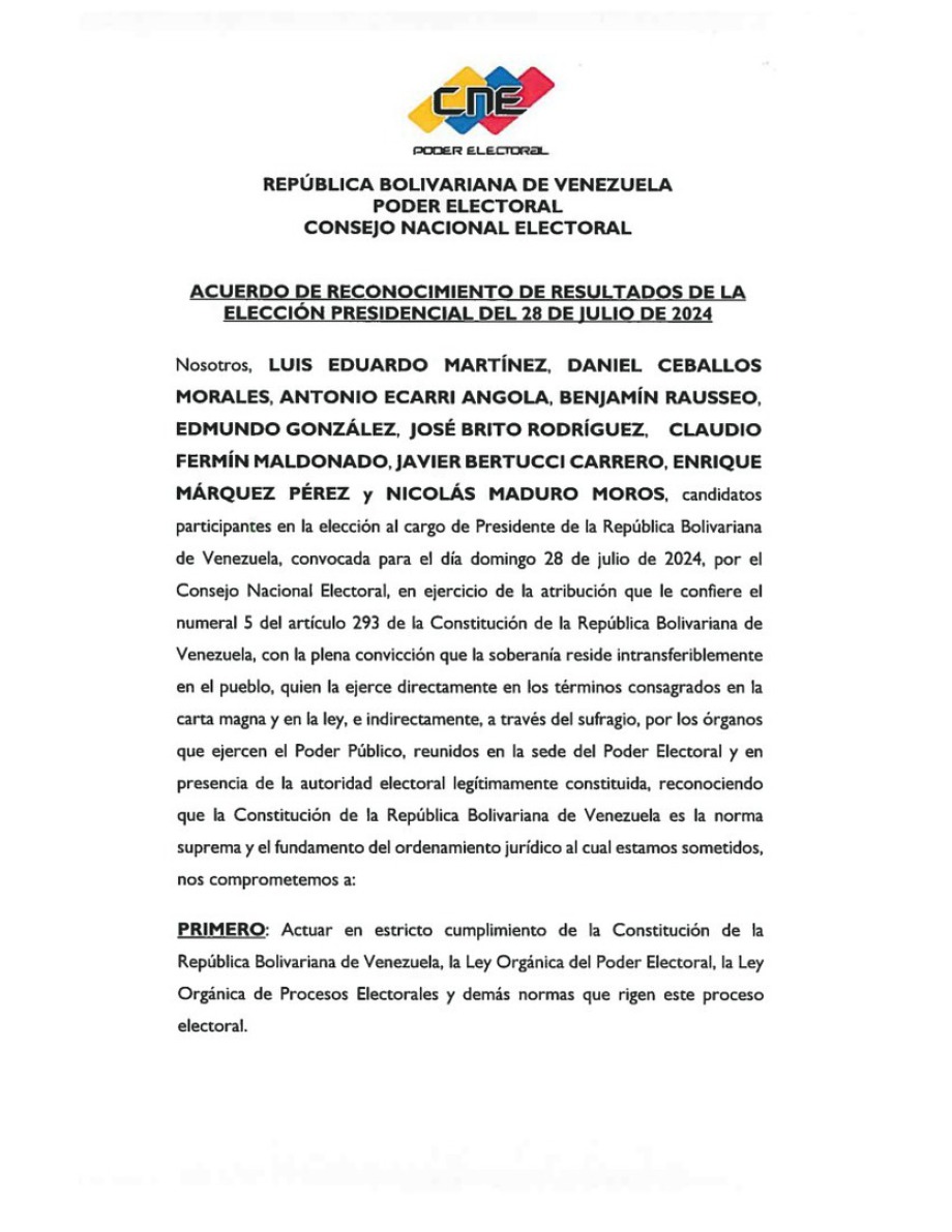 Acuerdo de 20 de junio de 2024, de los candidatos participantes en las Elecciones Presidenciales, sobre los resultados de los comicios.