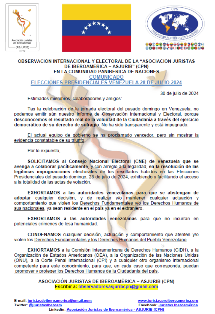 OBSERVACION INTERNACIONAL Y ELECTORAL DE LA “ASOCIACION JURISTAS DE IBEROAMERICA – ASJURIB” (CPN) EN LA COMUNIDAD PANIBERICA DE NACIONES: