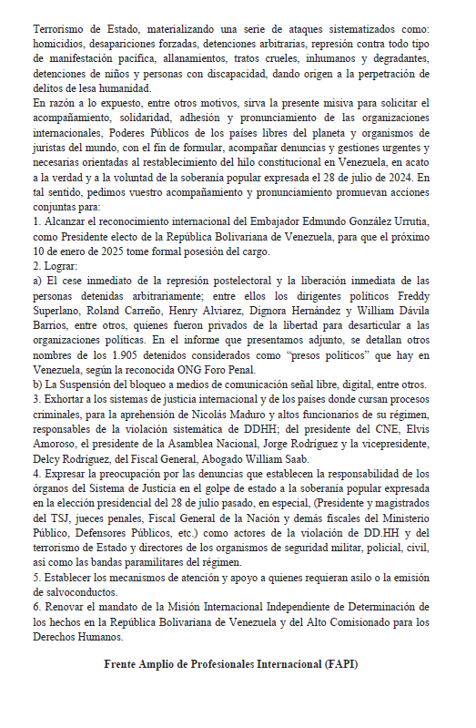 Por lo tanto, haremos labor de difusión y de seguimiento de las elecciones presidenciales de Venezuela para el periodo 2025-2031, que se llevarán a cabo el domingo 28 de julio de 2024, para, entre otros extremos, verificar de que se hayan seguido todos los principios de transparencia, buen gobierno y participación ciudadana durante el desarrollo del proceso electoral en dicha nación.