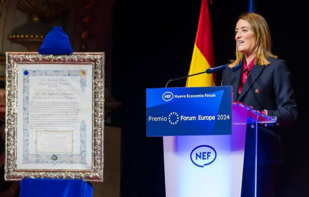 En el discurso con el que ha recibido el Premio Fórum Europa 2024, la Presidenta del Parlamento Europeo, Dª Roberta Metsola ha resaltado el papel de España como país en el desarrollo de una Unión Europea fuerte. "El papel de España es crucial. Con sus vínculos únicos a través del Mediterráneo y del Atlántico, España es clave para construir una Europa que pueda hablarle al mundo. Una Europa que pueda conducirnos a un mundo nuevo. Una Europa de oportunidades que pueda estar a la altura de su promesa. Para las generaciones venideras.”