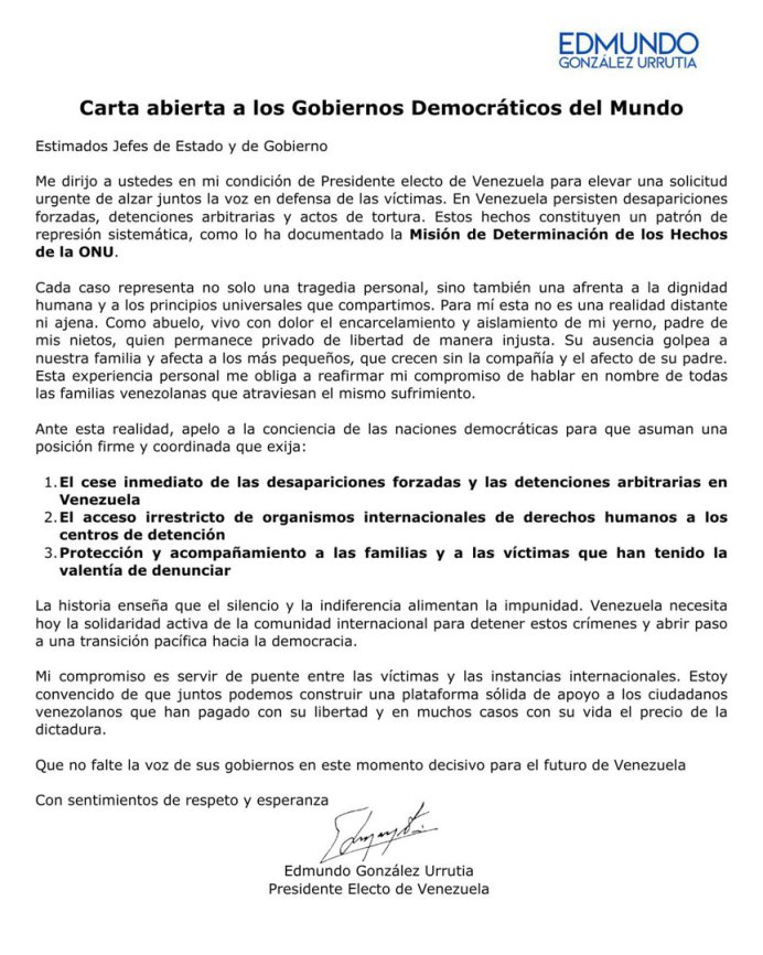 El evento contó con una nutrida concurrencia, en la que destacó la presencia del ex Presidente de Costa Rica y Premio Nobel de la Paz, Dr. Oscar Arias y del Presidente Electo de Venezuela, Dr. Edmundo González Urrutia, quien ha redactado CARTA ABIERTA A LOS GOBIERNOS DEMÓCRATAS DEL MUNDO, para elevar una solicitud urgente de alzar juntos la voz en defensa de las víctimas. En Venezuela persisten desapariciones forzadas, detenciones arbitrarias y actos de tortura. Estos hechos constituyen un patrón de represión sistemática, como lo ha documentado la Misión de Determinación de los Hechos de la ONU.