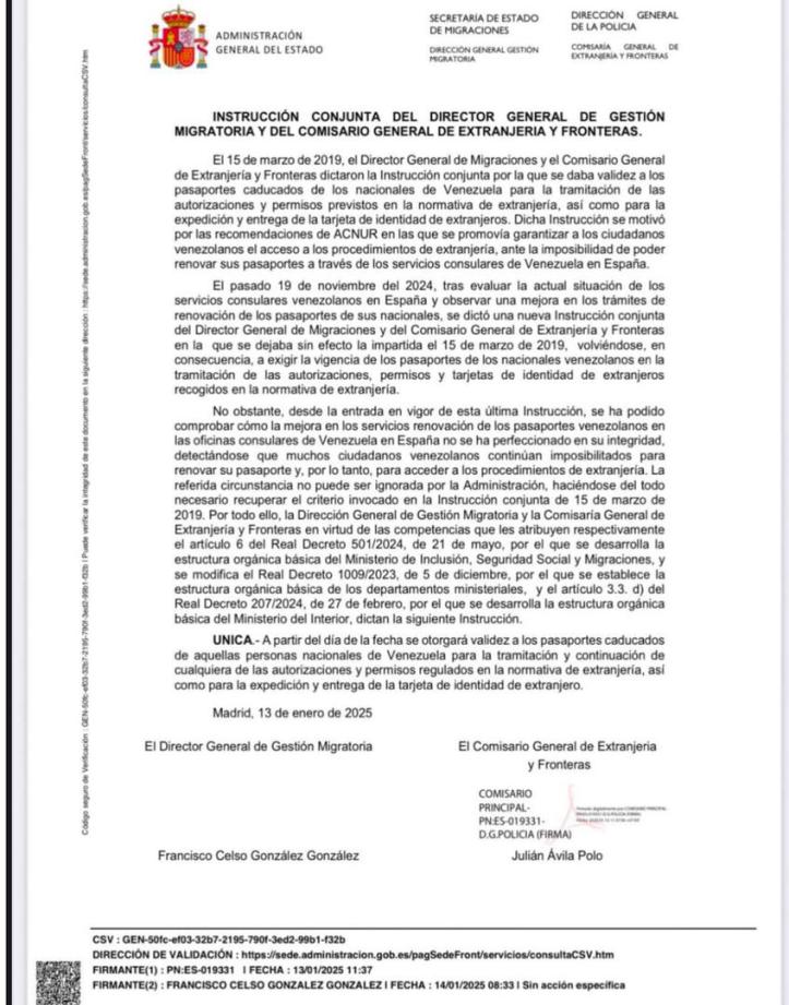 Se vuelve a reconocer la validez de los pasaportes caducados de los ciudadanos venezolanos para diversos trámites de extranjería en España: